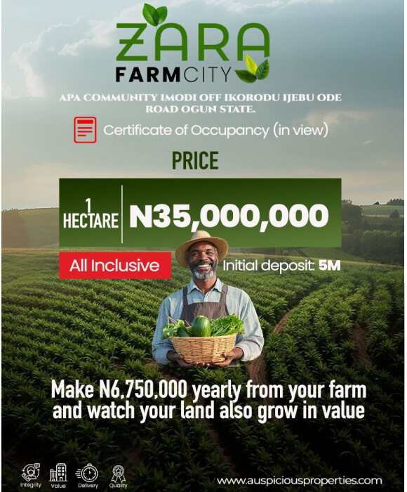 Zara Farm City is more than land—it’s a gateway to wealth creation and sustainability through land banking and agricultural investment.